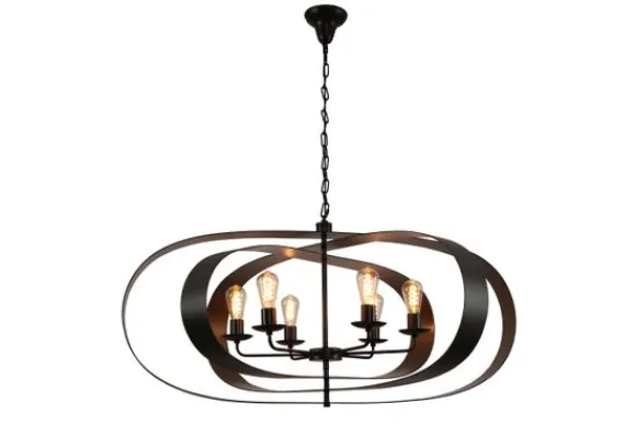 Hanglamp Pluton 6-lichts ovaal van het merk Tom’s Luxury Lights is een opvallende blikvanger in ieder interieur. De open stalen ringen geven de lamp een speelse en industriële uitstraling die prachtig tot zijn recht komt boven een grote eettafel of kookeiland.