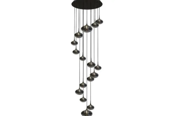 Hanglamp Paradiso van het merk Maretti Lighting is een indrukwekkende lamp. Deze bestaat uit een zwarte, ronde plafondbak met 16 smoke kleurige glazen bollen in verschillende maten, met daarop een zwarte houder. Het voorbeeld is hier in een mooie spiraal opgehangen. De snoeren zijn in hoogte verstelbaar tot maximaal 250 cm, dus je kan de lichtbronnen precies op de hoogtes hangen die jij wilt!