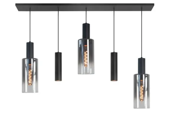 Dankzij de gerookte glazen kappen en het strakke zwarte armatuur past hanglamp Perugia perfect in een modern of industrieel interieur. Deze lamp wordt geleverd zonder lichtbronnen.
