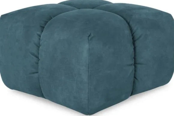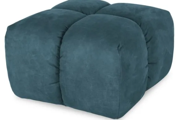 Hocker Trentino van het merk Moderno heeft een geblokt stikpatroon en loopt tot net boven de grond.