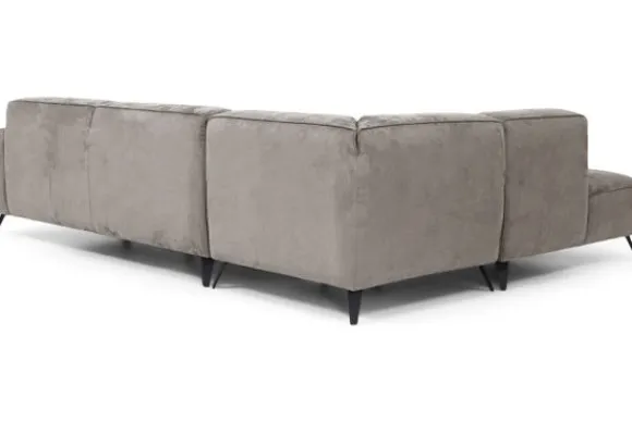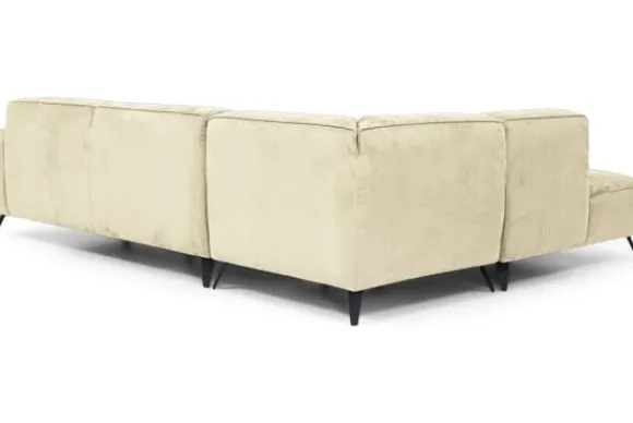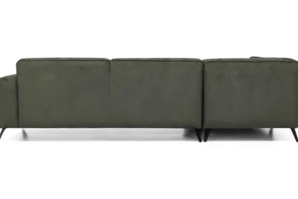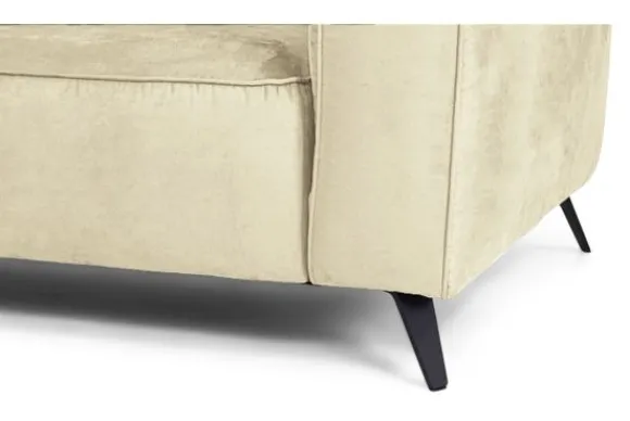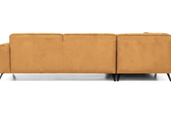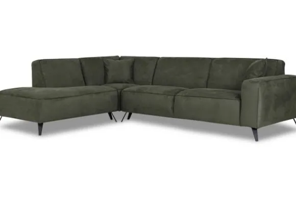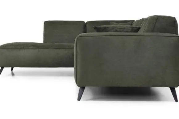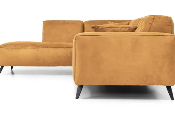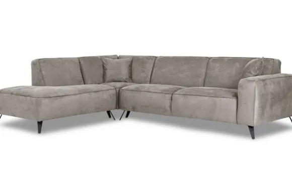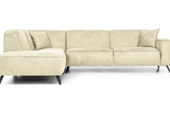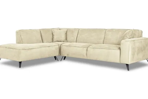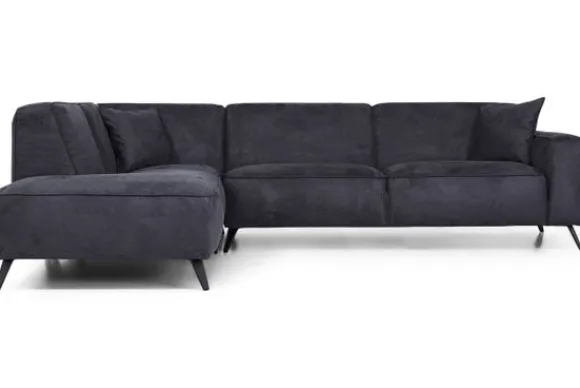 Deze hoekbank wordt standaard uitgevoerd met zwart metalen poten en exclusief sierkussens.
