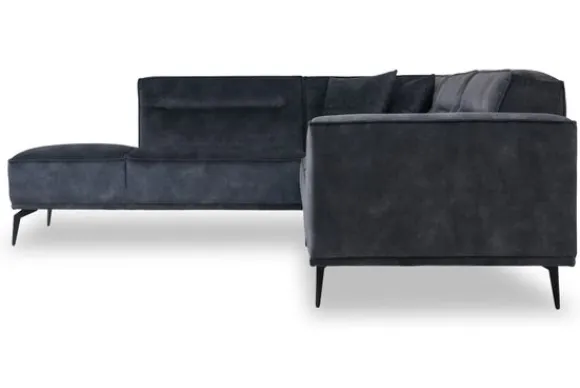 Hoekbank Iris van het merk Design Italia is beschikbaar in alle kleuren en in verschillende materiaalsoorten zoals stof, velvet en rundleder. Je kunt kiezen uit diverse afmetingen. Ook kun je kiezen voor een gladde rugleuning of intrekkiningen in de rug en voor een geknepen naad of een dichte naad. Dit is een strakke bank door de rechte, vaste kussens. De bank staat op metalen knikpoten waardoor het een luchtige uitstraling heeft.