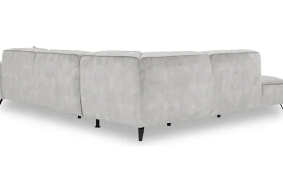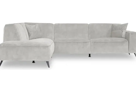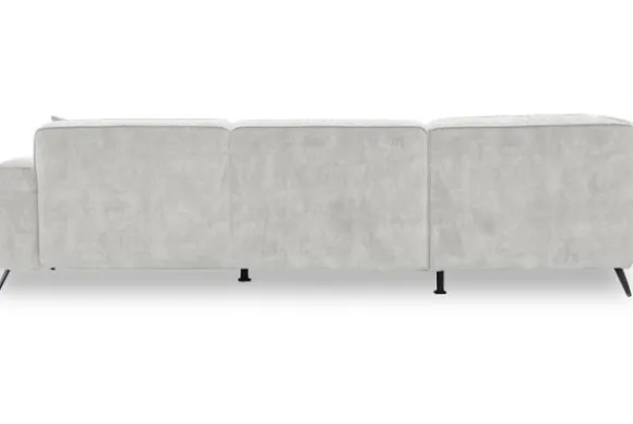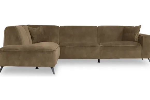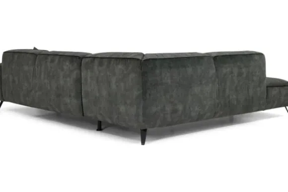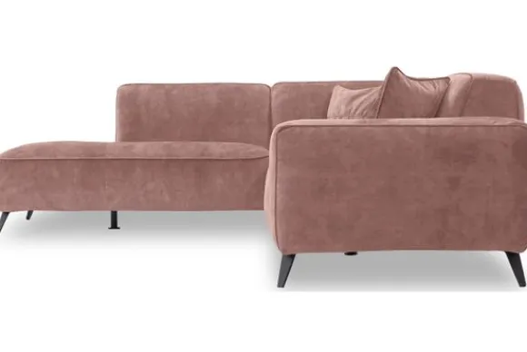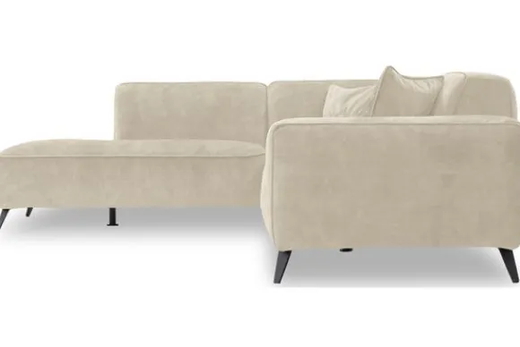 Deze hoekbank wordt standaard uitgevoerd met zwarte metalen pootjes en exclusief sierkussens.