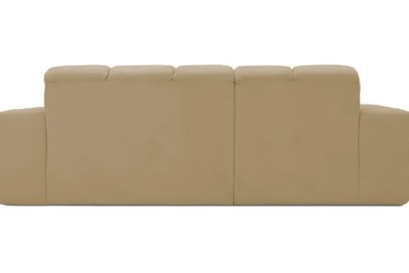 Bankstel Treviso van het merk Moderno is een bank met geblokte zit- en rugkussens en een zitting die doorloopt tot net boven de grond.