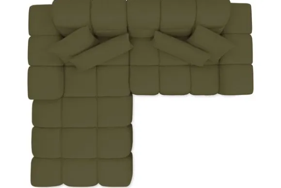 De bank is samen te stellen in vele afmetingen en verschillende opstellingen, of kies uit een van de standaard opstellingen. Ook zijn er bijpassende sierkussens en poefjes beschikbaar. Deze worden uitgevoerd in dezelfde stof als de bank.