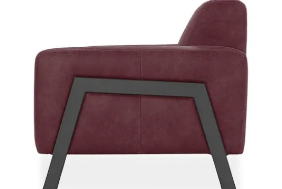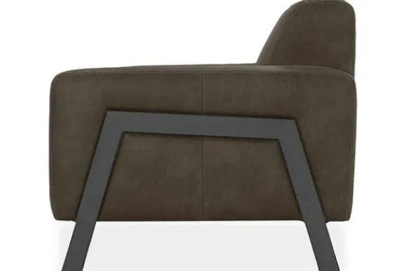 Fauteuil Sorelli van het merk Dutch Comfortline is een hedendaagse stoel met een robuust silhouet, elegante stiksels in de rugleuning en opvallende metalen hoekpoten.