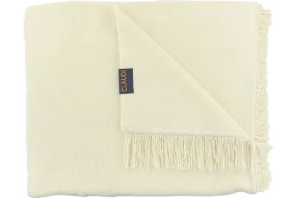 Plaid Paulos Off White van het Nederlandse merk Claudi is 150 bij 200 cm en het kleed heeft aan beide kanten dezelfde kleur. Aan de zijkanten zitten sierlijke franjes. Paulos is gemaakt van 60% katoen en 40% acryl, door deze combinatie voelt het kleed heerlijk zacht aan.