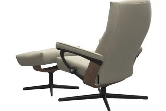 Relaxfauteuil David Cross van het merk Stressless is verkrijgbaar in alle kleuren. Tevens is de fauteuil leverbaar in stof en rundleder. Je kunt bij deze fauteuil kiezen uit diverse maten zoals Small, Medium en Large. Deze fauteuil heeft een Plus en Glide Systeem: Aan beide zijden van de fauteuil zit een knop waarmee je de weerstand van de stoel kan aanpassen naar eigen behoefte. Door de knoppen in tegengestelde richting te draaien stel je jouw ideale relaxpositie samen. Op die manier krijgt de nek en de onderrug goede onderstuening. Door de rugleuning naar voren te buigen activeer je de slaapfunctie. Op het moment dan je weer rechtop komt stelt de stoel zichzelf weer bij naar de normale stand.