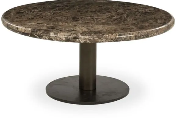 Salontafel Luigi 96513 van het merk Eleonora is een elegante tafel met een luxe uitstraling. Het ronde tafelblad is gemaakt van bruin marmer en laat een natuurlijk patroon zien dat elke tafel uniek maakt. Het stevige metalen onderstel geeft de tafel een moderne en stabiele basis.