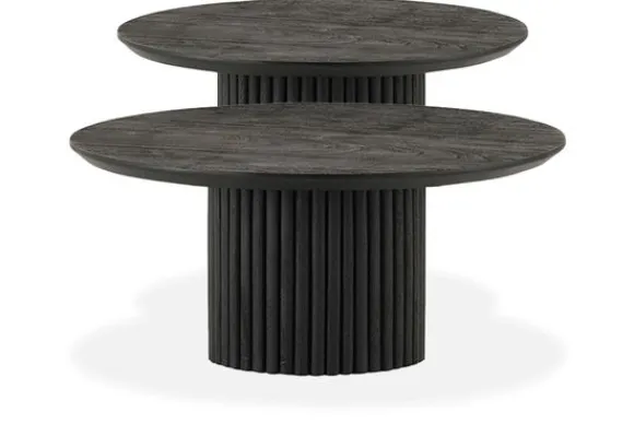 Salontafelset Congo van het merk MySons is beschikbaar in diverse kleuren en je vindt in deze meubelserie zowel salontafels als eettafels. Deze salontafelset in de kleur Acacia Black is in zijn geheel gemaakt van acaciahout en heeft een gezandstraald blad, hierdoor heeft het blad een wat grovere structuur. De Congo bestaat uit twee tafels met de volgende afmetingen: B90 x D90 x H40 cm en B60 x D60 x H45 cm.. De poot bestaat uit smalle houten latjes. Acaciahout is een duurzame houtsoort, daarnaast is het een harde houtsoort waardoor jouw blad erg lang mee gaat. Het hout heeft een fijne nerf en een warme uitstraling.
