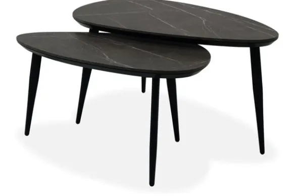 Salontafelset Dortmund van het merk Lamulux bestaat uit twee tafels. Je kunt kiezen uit de large salontafelset: H40xB75xD45cm en H45xB90xD60cm of de extra large salontafelset: H40xB90xD60cm en H45xB115xD75cm. Daarnaast kun je ook zelf de kleuren van de bladen kiezen onder ”stel jouw salontafelset samen.” De tafels zijn voorzien van smalle metalen poten.