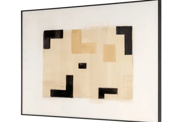 Schilderij Vortex 214074 van het merk Richmond Interiors is een abstract kunstwerk waarin beige vlakken en zwarte accenten samen een krachtig lijnenspel vormen. Het geometrische ontwerp brengt een moderne uitstraling die rust en spanning tegelijk oproept.