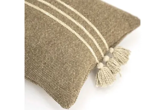 Sierkussen Linje 240079 van het merk By-Boo is een must-have accessoire voor een warme en gezellige sfeer in huis. Met zijn afmetingen van 40×60 cm is dit beige met bruine kussen perfect om je interieur op te fleuren. Het kussen is gemaakt van 100% katoen, waardoor het kussen heerlijk zacht aan voelt en zo ook zorgt voor extra comfort tijdens ontspannen avonden op de bank. De rechthoekige vorm, speelse franjes aan de zijkant en de warme kleur maken dit een tijdloos en veelzijdig stuk dat moeiteloos past in elk interieur.