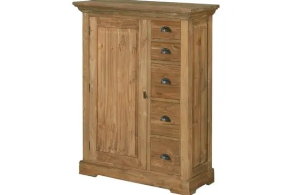 Spekkast Bologna KG 0019 van het merk Tower Living is onderdeel van de serie Bologna. Het programma van Bologna staat bekend om zijn rustieke uitstraling door het gebruik van teakhout. Deze onverwoestbare massief teakhout serie staat gegarandeerd voor jarenlang plezier. Deze kast heeft in totaal vijf lades en een deur, genoeg ruimte dus om vanalles op te kunnen bergen.
