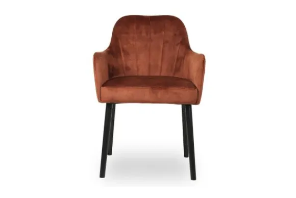 Eetkamerstoel Juif II van het merk Vie Chic is beschikbaar in alle kleuren en in verschillende materiaalsoorten zoals stof, velvet en microvezel. Je kunt kiezen uit verschillende pootkleuren. Een goud detail onderaan de poten is optioneel. De Juif is voorzien van armleuningen en verticale stiksels in de rugleuning.
