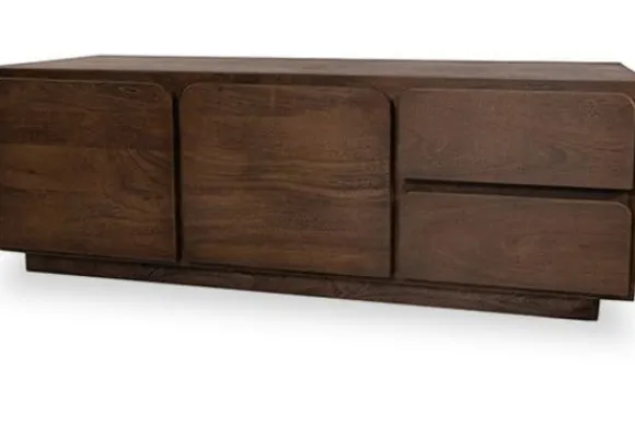 Het meubel is gemaakt van massief mangohout. Mangohout is hard en geschikt voor dagelijks gebruik. Tv meubel Bloemfontein is verkrijgbaar in 150 cm en 190 cm breed. Beide formaten bieden praktische opbergruimte voor apparatuur en accessoires.