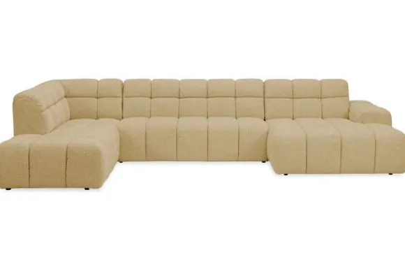 Je kunt kiezen uit verschillende materialen, waaronder stoffen als velvet en boucle. Daarnaast is de bank verkrijgbaar in uiteenlopende kleuren.