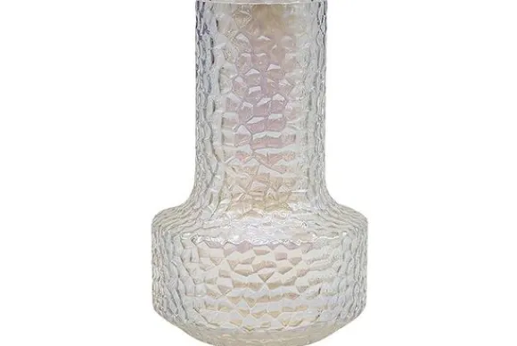 Vaas Bridey 213129 van het merk Richmond Interiors is gemaakt van glas. Het glazen oppervlak is voorzien van een subtiel reliëf met een parelmoerachtige afwerking. De veelkleurige glans verandert elegant afhankelijk van de lichtinval, wat een dromerige en luxueuze uitstraling geeft. Perfect als een opvallende decoratie op een bijzettafel, vensterbank of als middelpunt op een eettafel.