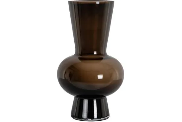De warme, rokerige bruintint en het zachte lijnenspel geven de vaas een stijlvolle en tijdloze uitstraling. De vaas heeft een elegant silhouet met een ronde onderkant die overloopt in een slanke, licht uitlopende hals.