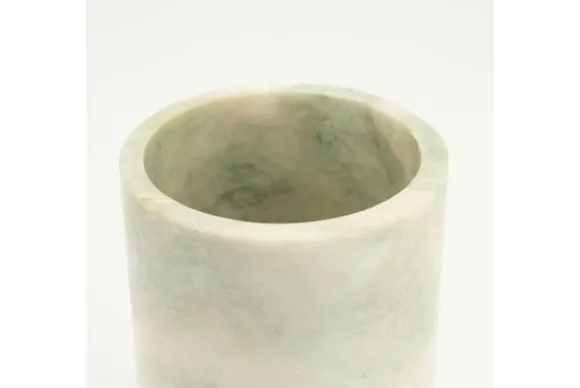 Vaas Verde 250149 van het merk By-Boo is een stijlvolle en robuuste toevoeging aan je interieur. Vervaardigd uit massief marmer in een lichte, groene tint met elegante witte aders, straalt deze vaas pure luxe en verfijning uit. De organische marmerpatronen maken elk stuk uniek en voegen een vleugje exclusiviteit toe aan je interieur. Marmer is een natuurproduct en kenmerkt zich door de unieke afwerkingen en kan zowel grove als gladde delen bevatten.