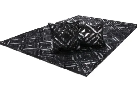 Vloerkleed Spark 410 Zwart Zilver van het merk Divendo is verkrijgbaar in verschillende afmetingen, designs en kleuren. Het prachtige lederen tapijt met zilverkleurig metaalfolie rondt elke elegante inrichtingsstijl vakkundig af. Het hoogwaardige, elegante vloerkleed van 100% leer geeft een luxeus tintje aan de omgeving en zorgt voor een heel bijzondere flair. Het kleed is met de hand gemaakt, dus elk leren tapijt is uniek. Het gebruik van fijne natuurlijke materialen en hoogwaardige afwerking zorgen voor een dynamische uitstraling en maken elk tapijt uniek, omdat natuurlijke producten tot 30% in vorm, kleur en patroon kunnen variëren. Het moderne honingraatpatroon geeft het vloerkleed een bijzonder tintje.