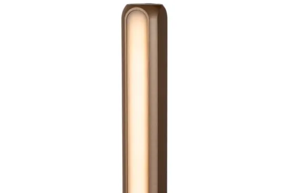 Vloerlamp Braga van het merk Lucide is het toonbeeld van minimalistisch design met een moderne twist. De slanke, verticale lichtstaaf in koffiebruine afwerking rust op een elegante zwarte ringvoet, wat zorgt voor een strak en verfijnd silhouet.