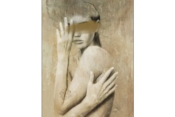 Wandkleed Touching Me van het merk Urban Cotton toont een artistieke weergave van een vrouwelijke figuur, uitgevoerd in warme beige- en bruintinten. De sfeer is zacht, intiem en introspectief—alsof de figuur gevangen zit in een moment van verstilling. Het geheel ademt een gevoel van tijdloosheid en innerlijke contemplatie uit.