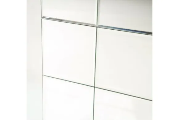 Het kubusvormige ontwerp met strak verdeelde panelen geeft de bijzettafel een eigentijds karakter.