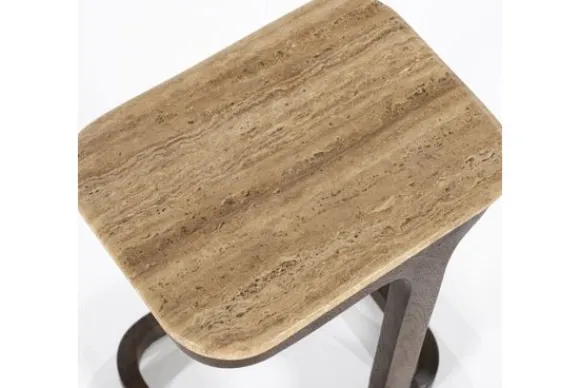 Bijzettafel Tyler 96151 van het merk Eleonora is de perfecte toevoeging op een landelijk interieur. Met een blad gemaakt van travertin en een onderstel van mangohout. Travertin is een mooi en duurzaam natuurlijk sedimentair gesteente, gemaakt van calciumcarbonaat, dat vaak gebruikt wordt voor tafelbladen. Het heeft een unieke uitstraling met variaties in kleur en textuur. Hoewel het redelijk stevig is, kan travertin gemakkelijk krassen oplossen van scherpe voorwerpen of zware impact.