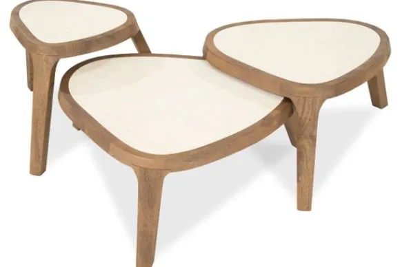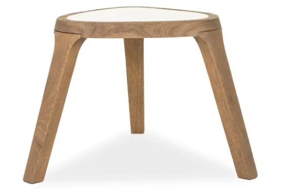 Bijzettafel Fred 96416 van het merk Eleonora is een eigentijds meubelstuk dat verfijning en natuurlijke charme harmonieus combineert. De driehoekige bladvorm, uitgevoerd in Botticino marmer, brengt een tijdloos en elegant karakter met zich mee, terwijl het subtiele kleurenspel in het marmer een serene diepte toevoegt. Het onderstel is vervaardigd uit massief mangohout, warm van toon met zichtbare nerven die een organisch, rustiek accent aan het ontwerp geven. De poten lopen taps toe en zijn op een geraffineerde manier verbonden aan het blad, wat zorgt voor een solide constructie met een verfijnde uitstraling.