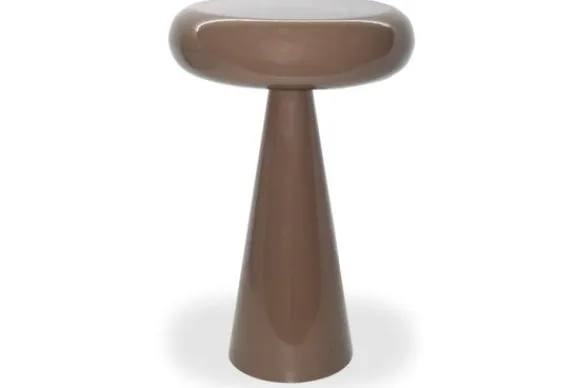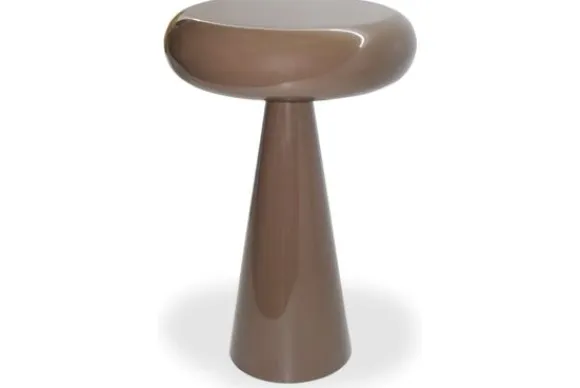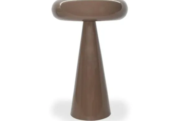 Bijzettafel Sam van het merk Livingfurn is een elegante verschijning met een warme, chocoladebruine glans die onmiddellijk de aandacht trekt. Het afgeronde blad en het taps toelopende onderstel zorgen voor een vloeiende vorm die rust en balans uitstraalt.