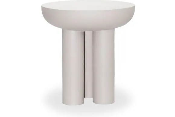 Bijzettafel Jez van het merk Livingfurn heeft een rond blad en staat op drie stevige kolompoten. De tafel is uitgevoerd in een zachte witte kleur en heeft een strak en eenvoudig ontwerp. Deze tafel past goed binnen een Japandi interieur en sluit ook mooi aan bij een design woonstijl.