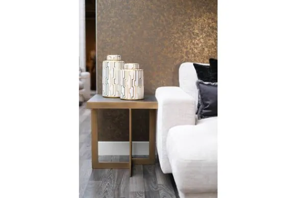 Bijzettafel Cambon 211182 van het merk Richmond Interiors heeft een strakke, luxueuze uitstraling. Het blad is gemaakt van eiken fineer met een brass (staal in mat goud) onderstel. Het onderstel zorgt voor een speelse uitstraling, doordat de poten niet lineair staan. Deze unieke bijzettafel is een eyecatcher in jouw zithoek!