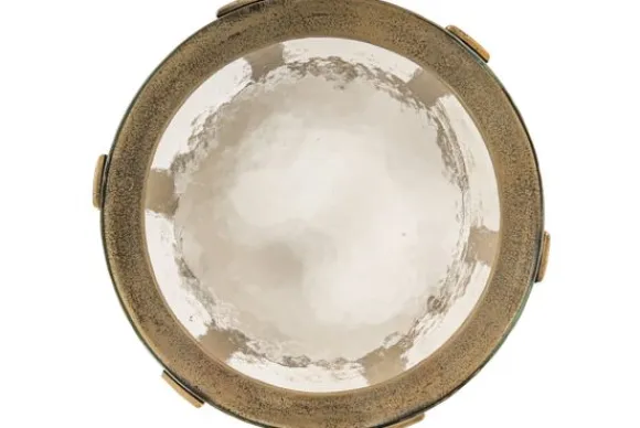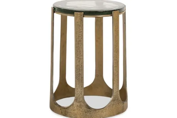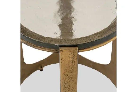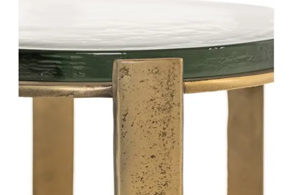 Bijzettafel Rixo 213473 van het merk Richmond Interiors is een stijlvolle blikvanger met een luxe uitstraling. De tafel heeft een rond glazen blad dat rust op een open frame in een warme goudtint. De combinatie van glas en metaal zorgt voor een chique en luchtig effect.