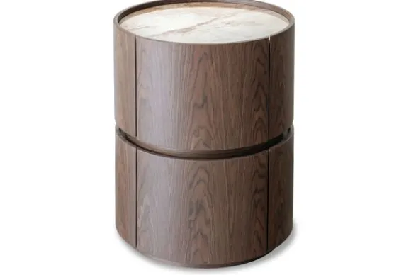 Bijzettafel Ellery 214201 van het merk Richmond Interiors heeft een rond ontwerp met een blad van keramiek in marmerlook.