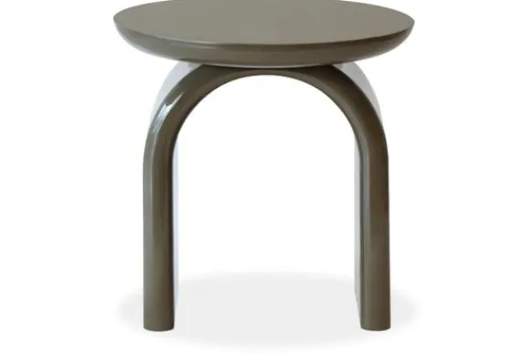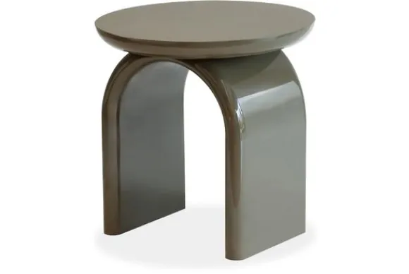 Bijzettafel Merrick 214207 van het merk Richmond Interiors in de kleur Green heeft een opvallend rond blad met een stevige boogvormige poot. De hoogglans afwerking zorgt voor een strakke, moderne look.