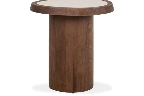 Bijzettafel Melrose 214453 van het merk Richmond Interiors combineert de warmte van mangohout met de luxe uitstraling van marmer. Het ovale blad, omlijst door een robuuste houten rand, zorgt voor een natuurlijke en stijlvolle uitstraling.