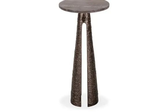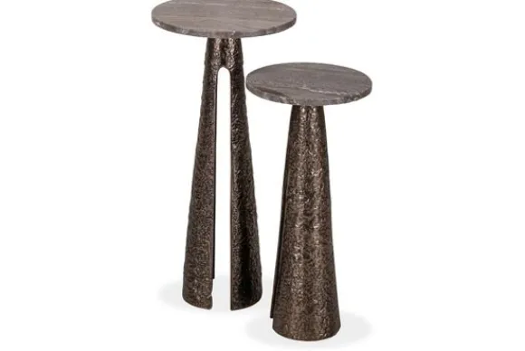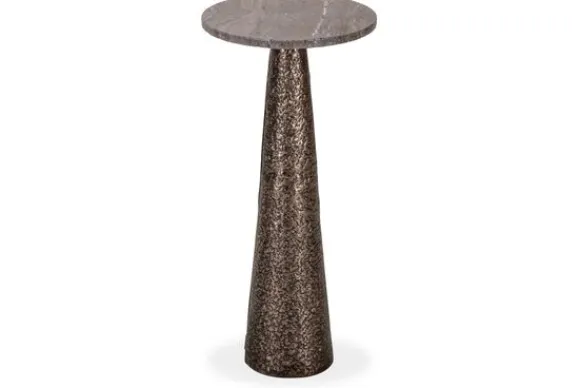 Bijzettafel Eldora 214499 van het merk Richmond Interiors heeft een rond blad van travertin dat direct opvalt door de natuurlijke kleurnuances en adering. Omdat travertin een natuursteen is heeft elke tafel een uniek blad met een eigen uitstraling.