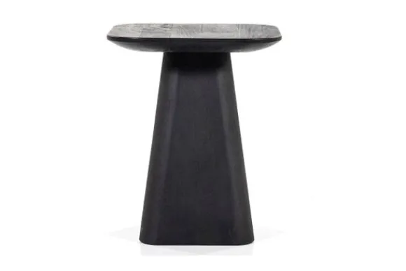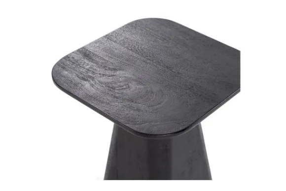 Het zwart afgewerkte mangohout benadrukt de robuuste uitstraling en laat de unieke houtnerven zacht doorschemeren. Geen enkel exemplaar is hetzelfde, dankzij de natuurlijke kleurschakeringen in het hout. Deze bijzettafel is niet alleen praktisch naast een bank of fauteuil, maar ook perfect als decoratief accent in iedere ruimte.