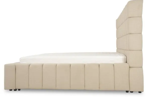 Bed Befame van het merk Bedscape is verkrijgbaar in drie afmetingen. Daarnaast is dit bed verkrijgbaar in alle kleuren en verschillende materiaalsoorten. Het bed heeft een uniek uiterlijk dankzij het blokpatroon.