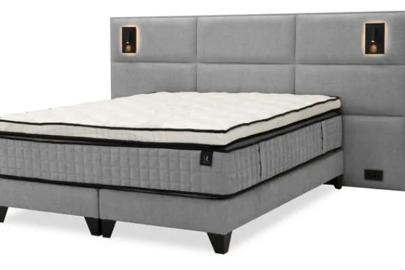 Boxspring Arizona Luxe van het merk King Koil is een complete boxspring met een hoog hoofdbord, matras en topper. Het hoofdbord Arizona Luxe is voorzien van LED verlichting, een stopcontact en een USB aansluiting. Het hoofdbord is 140 cm hoog en steekt aan beide kanten ongeveer 50 cm uit. De boxspring staat op zwarte poten en vormt een stevige basis voor het bed.