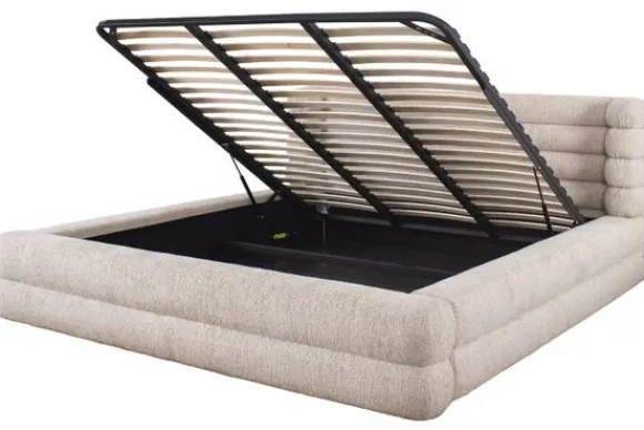 Het bed is praktisch in gebruik dankzij de ingebouwde opslagruimte. Het bed opent aan de voorzijde waardoor je eenvoudig extra ruimte creëert voor beddengoed of kussens.