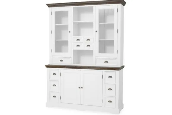 Buffetkast Fleur DD 0010C van het merk Tower Living wordt geleverd in de kleur wit. De eiken delen worden licht geborsteld en afgewerkt met een olie. Je kunt de kast makkelijk schoonmaken met een zachte vochtige doek. Deze kast heeft diverse opbergmogelijkheden, namelijk twee glazen deuren, drie open vakken, twaalf lades en twee dichte deuren.