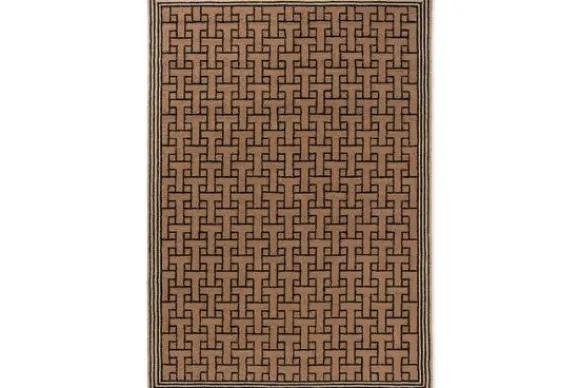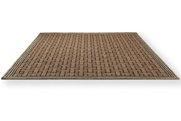 Buitenkleed TB T Monogram Light Brown Outdoor 455811 van het merk Brink & Campman is een echte sfeermaker voor binnen én buiten. Het kleed heeft een stijlvol geweven patroon in bruin, omlijst met een subtiele gestreepte rand in beige. Elegant, speels en met een vleugje retro charme.