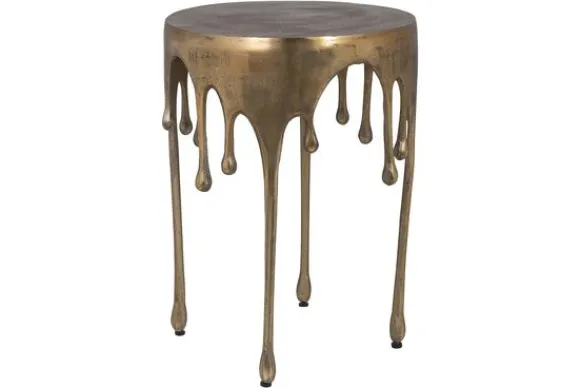 Bijzettafel Carly 211194 van het merk Richmond Interiors heeft een unieke, chique uitstraling. De tafel heeft druppels aan de zijkanten hangen, wat zorgt een de unieke uitstraling. Hierdoor heb jij een echte eyecatcher in jouw zithoek staan. De tafel is gemaakt van brass (staal in mat goud).