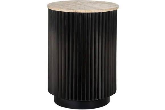 Bijzettafel Hampton 211590 van het merk Richmond Interiors heeft een strakke uitstraling. Het blad is gemaakt van traverin. Travertin is een mooi en duurzaam natuurlijk sedimentair gesteente, gemaakt van calciumcarbonaat, dat vaak gebruikt wordt voor tafelbladen. Het heeft een unieke uitstraling met variaties in kleur en textuur. Hoewel het redelijk stevig is, kan travertin gemakkelijk krassen oplossen van scherpe voorwerpen of zware impact.