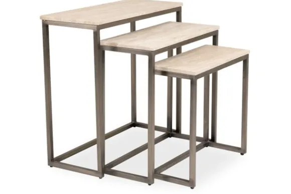 Deze set van drie bijzettafels past perfect in een modern interieur, waar de strakke lijnen en de natuurlijke kleurtinten zorgen voor een harmonieuze balans. Het subtiele karakter van het travertinblad voegt een organische luxe toe, waardoor deze set ook moeiteloos opgaat in een Japandi-stijl, waar minimalisme en natuurlijke materialen samenkomen. De robuuste metalen basis geeft de tafels een industrieel randje. Tegelijkertijd zorgen de lichte travertinkleuren en het speelse inschuifbare ontwerp voor een luchtigheid die aansluit bij een klassiek interieur.