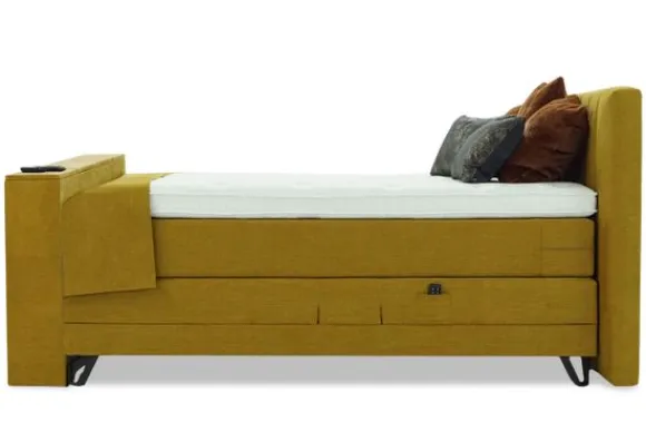 Dit bed wordt standaard geleverd met een elektrische tv-lift (exclusief tv) in het voetenbord. Het voetenbord heeft dezelfde breedte als het bed. Deze kan je bedienen met een meegeleverde afstandsbediening. De maximale afmeting voor de tv is 43 inch en de breedte van de klep is 100 cm.