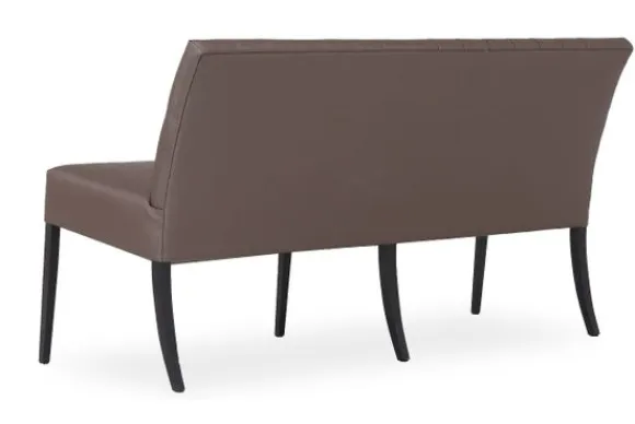 Deze eetbank wordt standaard uitgevoerd met een houten poot in de kleur zwart, een gecapitonneerde rugleuning en zonder handgreep.