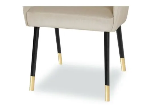 Deze eetkamerstoel wordt standaard uitgevoerd met houten poten in de kleur zwart met gouden uiteinden.